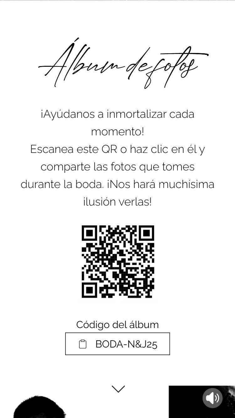 Esta funcionalidad no solo simplifica el proceso para tus invitados, sino que también anticipa la idea de que habrá un álbum compartido donde podrán subir sus recuerdos, ¡animándolos a capturar cada momento especial!